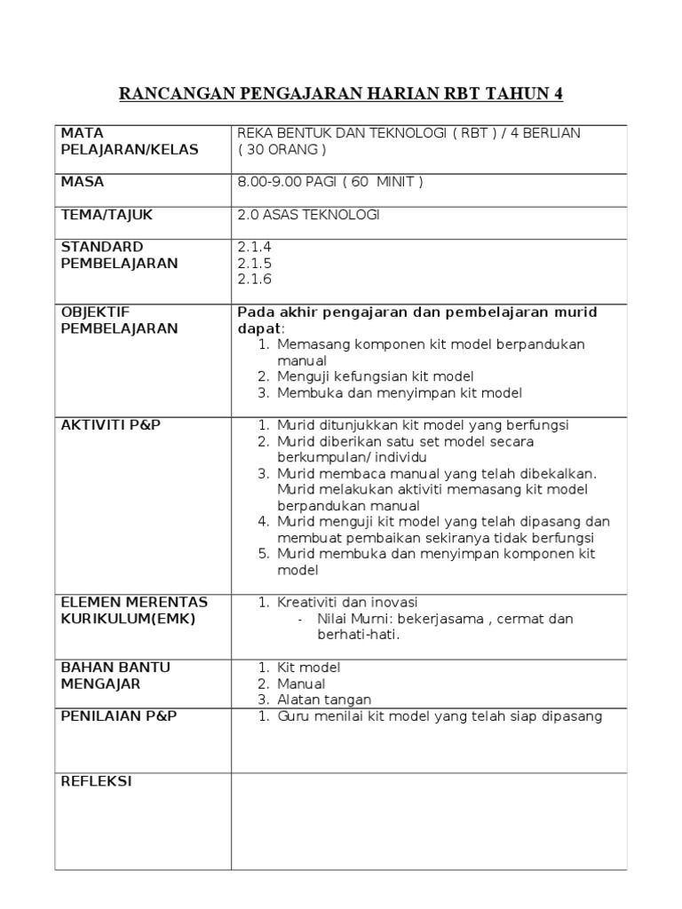 745 hingga 945 pagi 60 minit Standard Pembelajaran. Rancangan Pengajaran Harian Reka Bentuk Dan Teknologi Tahun 5. Dec 14 2019 im interested in rph bi tahun 3 4.