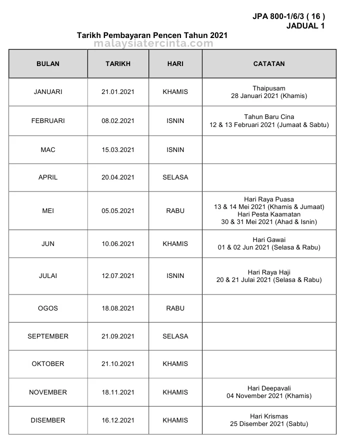 Jadual Dan Tarikh Bayaran Pencen 2022 Malaysia Spa